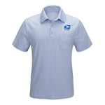 NEW Performance Polo Fused convertible collar with internal collar stays Dyed to match durable buttons Contemporary 100% Poly Performance fabric – wicking comfort, stay cool and dry Classic USPS-approved blue shade...