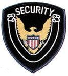 Features: Security (with scroll) Actual size 3-3/4" x 4-3/8" Gold border or Blue border on black fabric